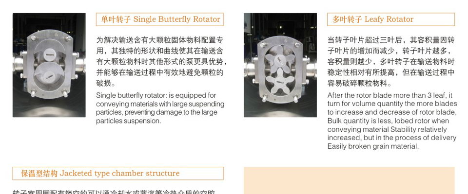 6、轉(zhuǎn)子和轉(zhuǎn)子之間絕無接觸,長期使用亦無磨損,運轉(zhuǎn)平穩(wěn),噪音低,效益高。 7、設(shè)計新穎、安裝維護簡單容易,方便清洗,保證機器內(nèi)部和生產(chǎn)衛(wèi)生清潔。